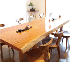 ★無垢のケヤキ一枚板を使って造られた大テーブル飾り気の無いのが店主のこだわりです。★